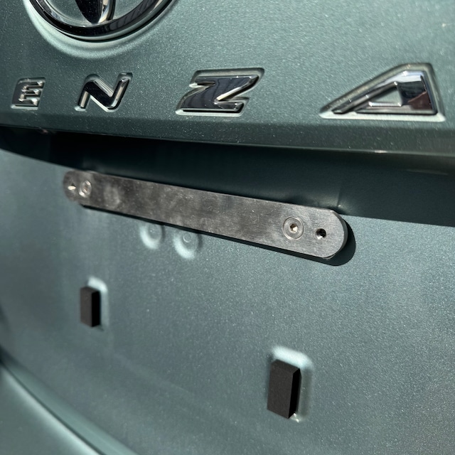 USナンバーアダプター 北米並行輸入車のナンバー穴を、日本のナンバー穴に変換するアダプターです。 既製品ですと薄い物でも高さが約10mm有ります。(画像6~7参照) (もっと酷い鉄板ビスで取付するタイプも有りますが、あれは論外です笑) 既製品を使用して取り付けるとナンバーが浮いた様な感じになるのが嫌で嫌で痒くなってしまうので、本製品を製作致しました。 ステンレス製で厚さはなんと4mm! タップも立ててありますのでそのまま装着可能! (M6皿ビスで装着出来るギリギリを狙って 6→5→最終4mmとなりました) 取り付けネジは付属していますが、用途に合わせて変更して下さい。 車種によっては US JP ナンバーがどちらも取付出来る様になっていますが、多くの場合穴まで開いていませんので、ナッター等の加工が必要です。(画像9~10参照) その際にこのアダプターを使用して頂ければ無加工で装着可能です。 (勿論、車両側を思い切って加工してベタ付け出来るのがベストですが・・・) 北米専売車の多くはUS穴のみの場合が多く、ナッター加工も不可能な車種も有ります。 (フラットなら可能ですが、大体盛り上がっています 画像11参照 車種ヴェンザ) 北米専売車の場合ナンバーポケットが狭い車も多々ありますので、交わす為のスペーサーとしても使えます。 また、ストレートタイプとオフセットタイプを用意していますにで、ベストな位置にナンバーが装着出来ます。(画像2~4参照) また、最薄とはいえ4mm浮きますので、ビビり音がする場はクッションを貼り付けで下さい。(画像12参照) 折角の北米並行輸入車のナンバーをこのアダプターを使って、スッキリと自然に取り付けてあげてください!